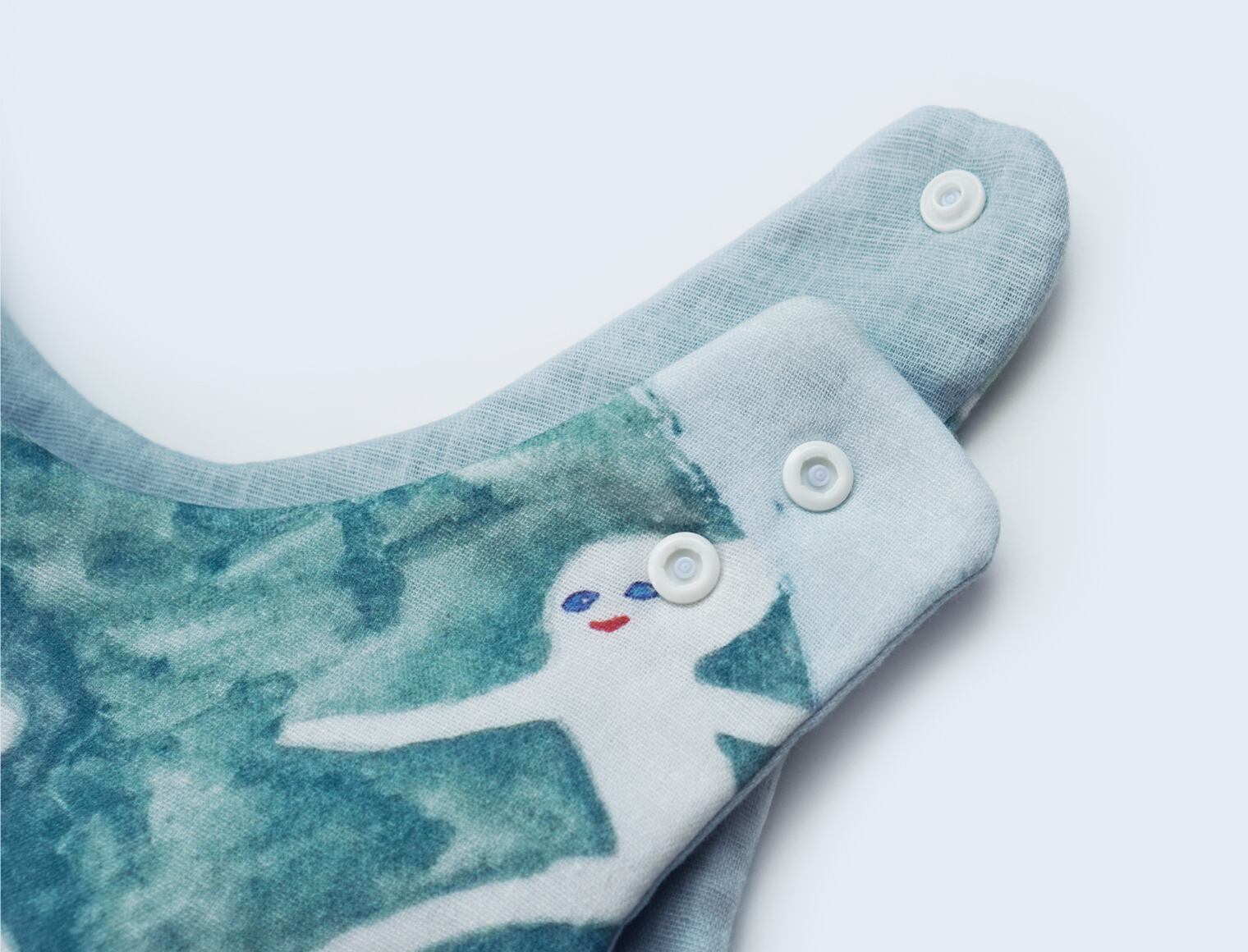スナップボタンが肩と両脇についていて着脱が楽々。