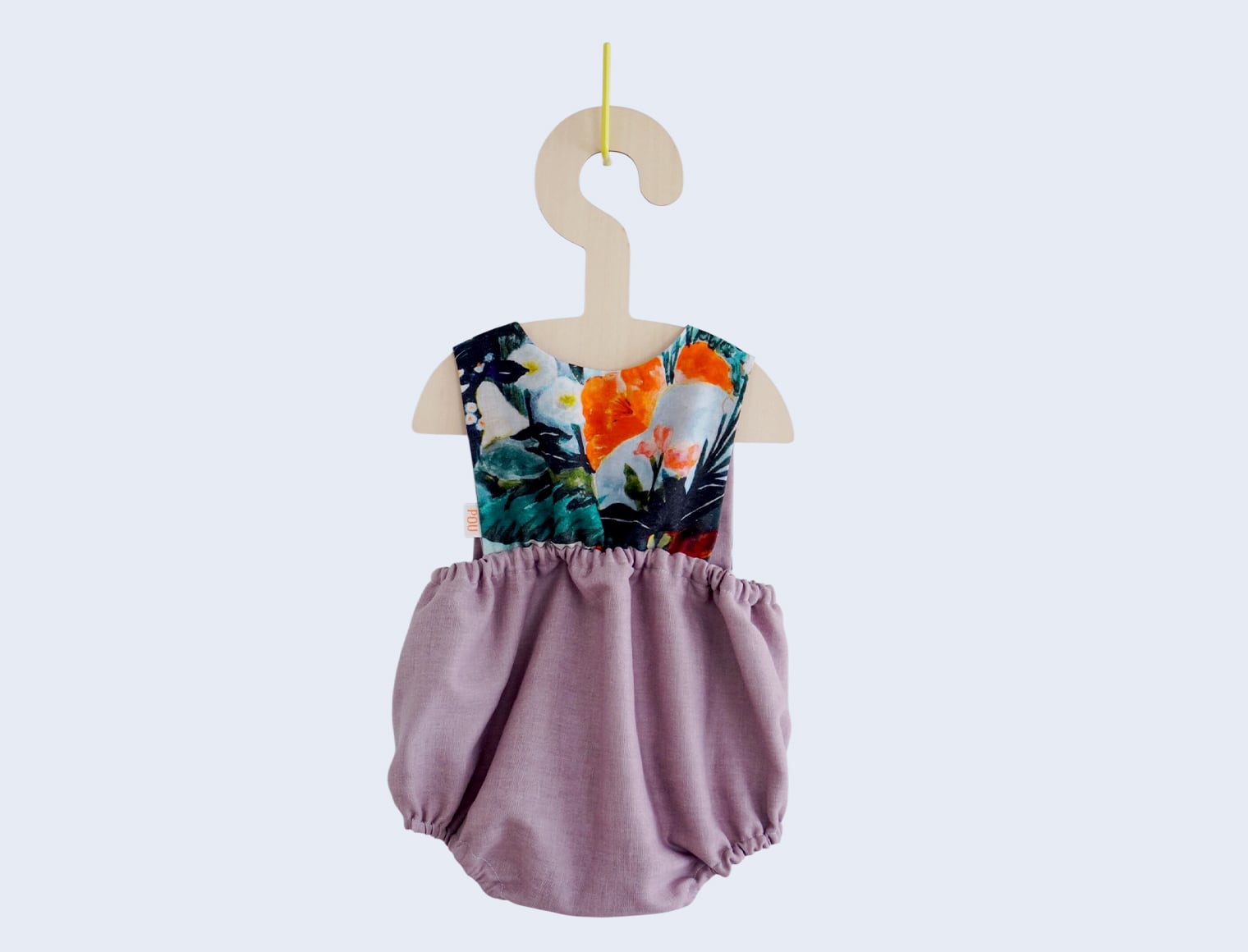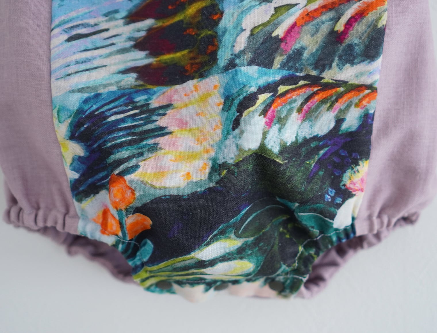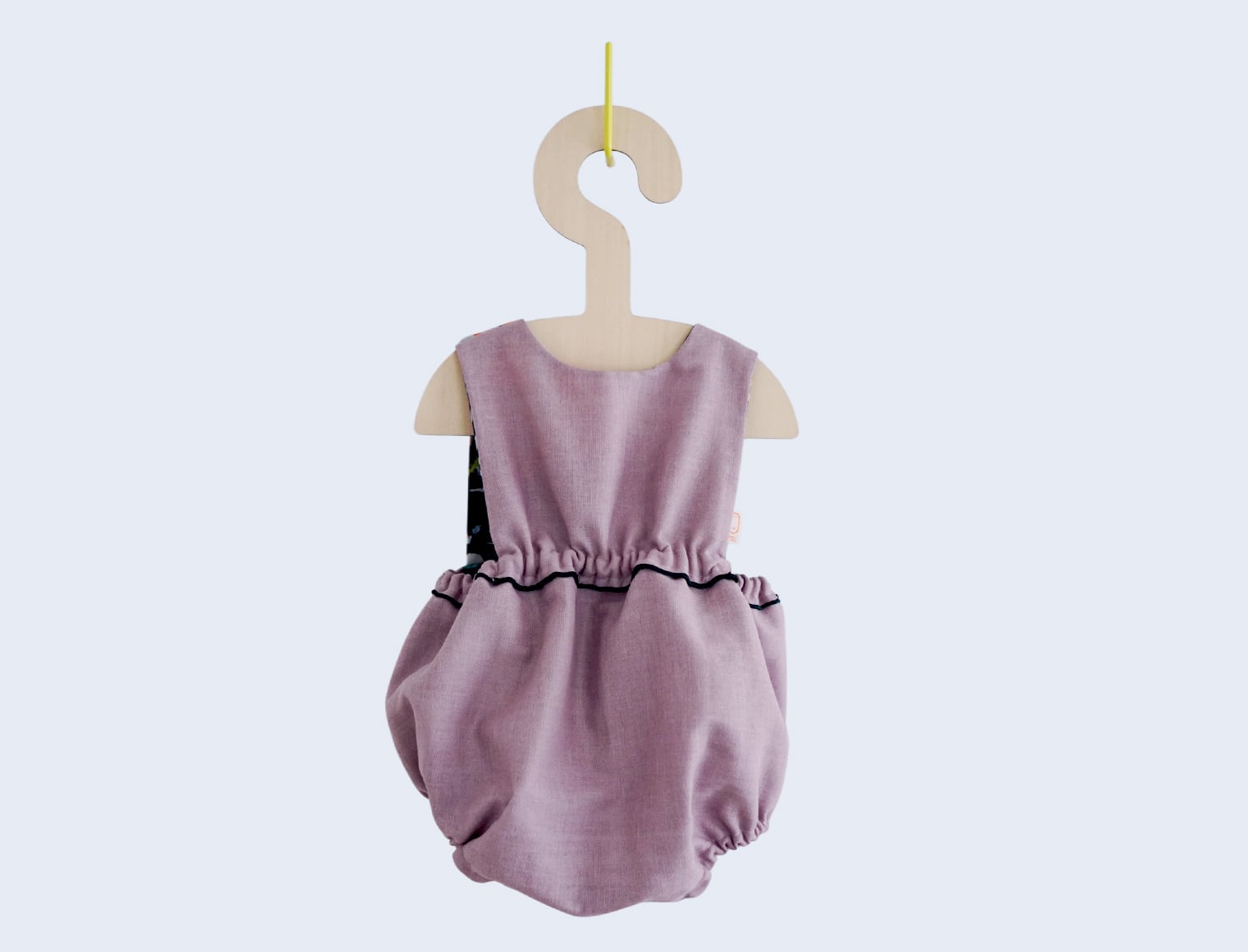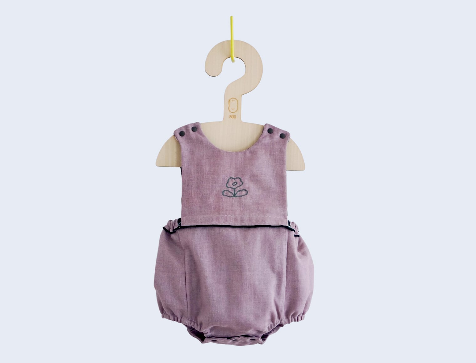 肩と股はスナップボタンで着脱やおむつ替えを楽ちんに、