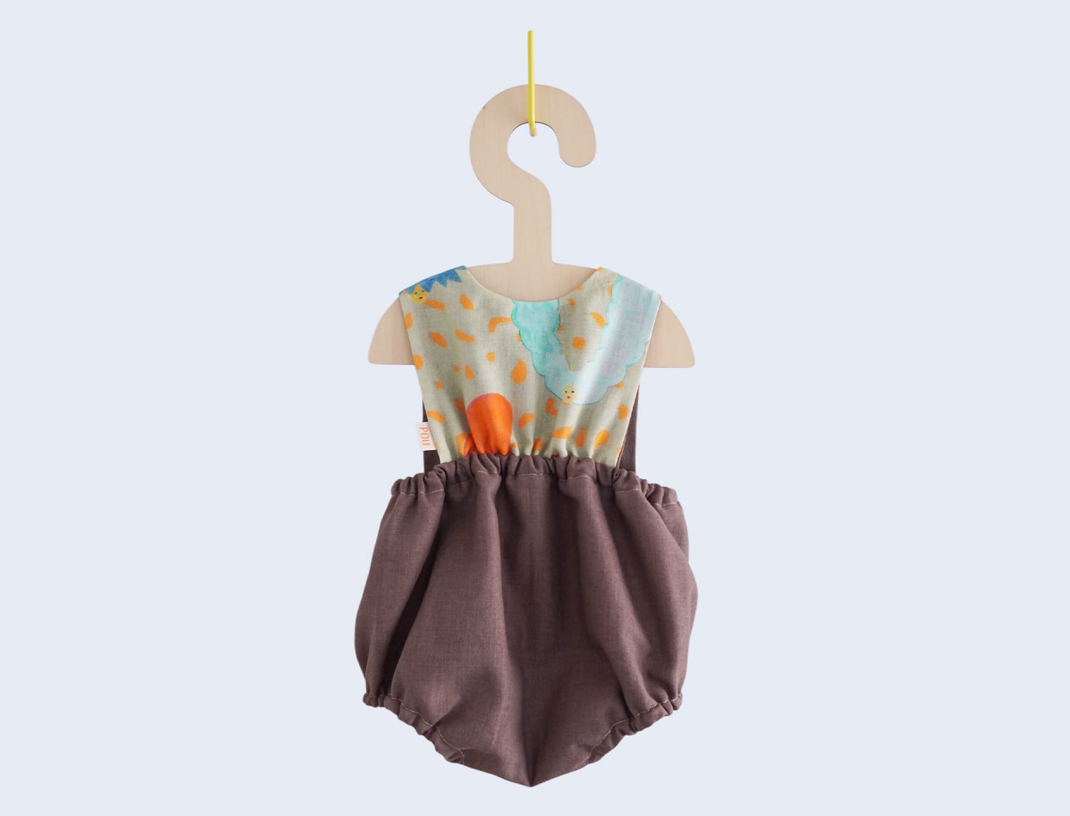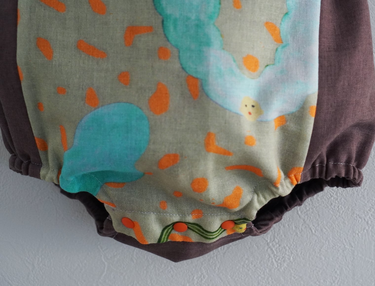 肩と股はスナップボタンで着脱やおむつ替えを楽ちんに、