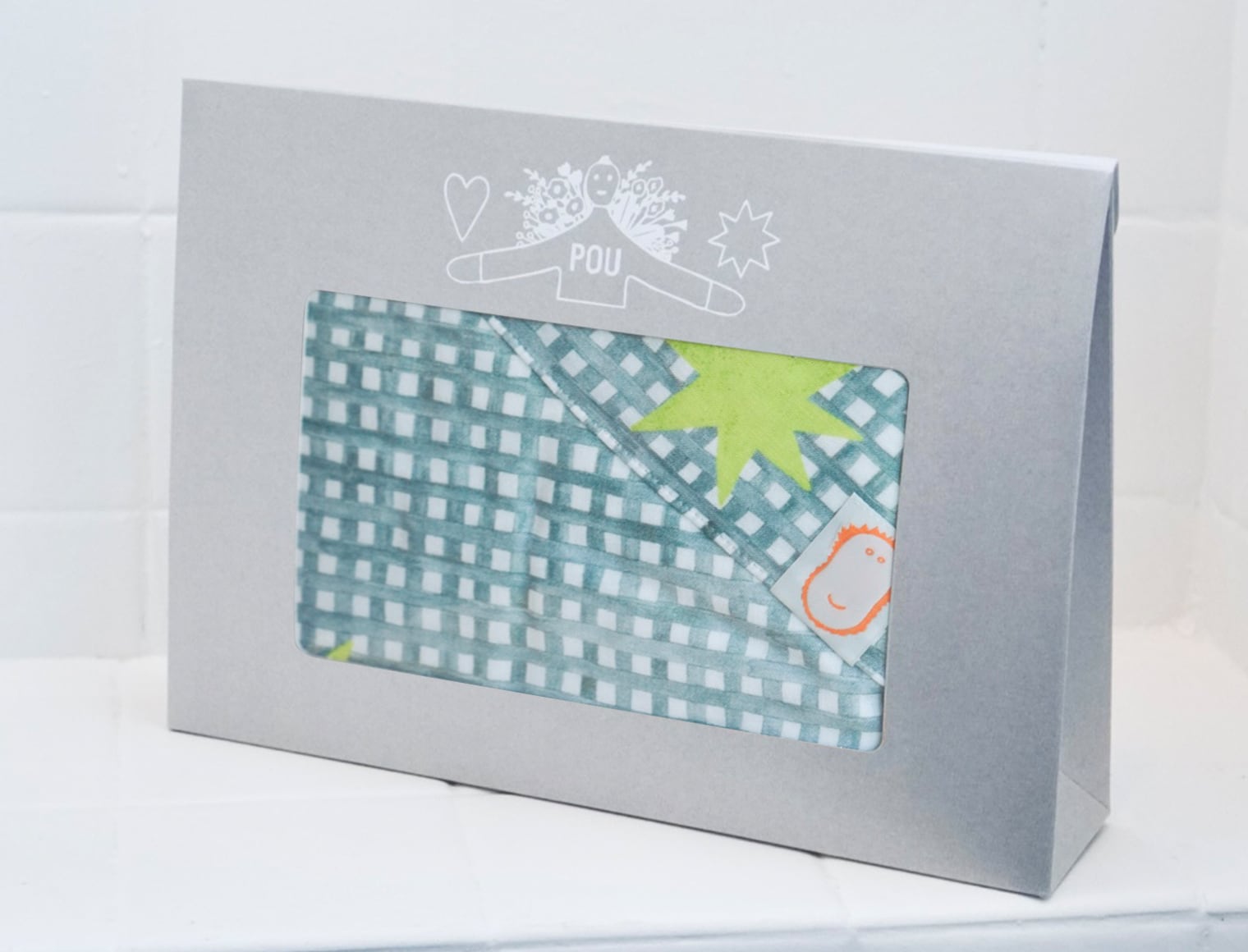手描きのおおらかなチェック模様に弾けるような星が散りばめられたデザイン。
