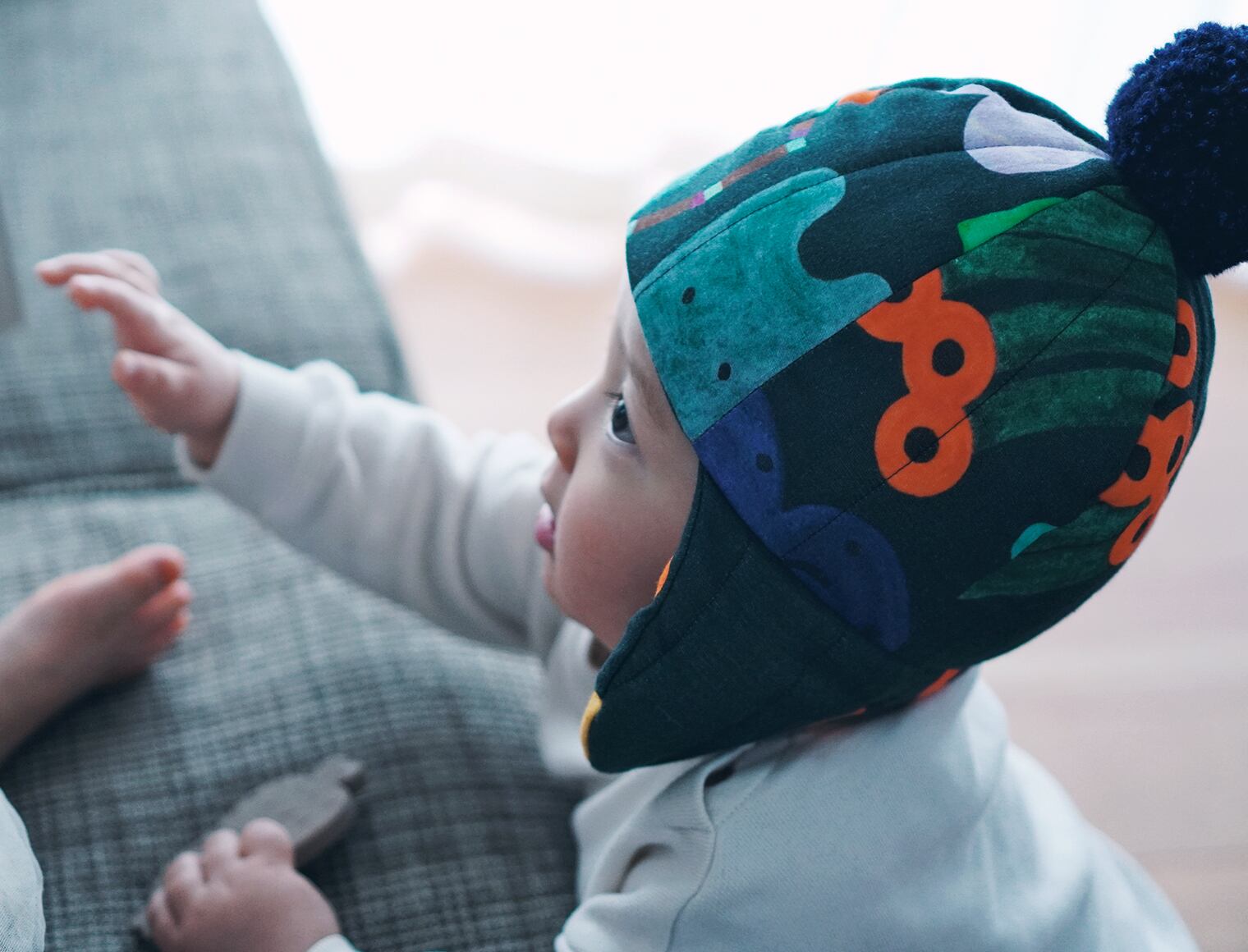 ダブルガーゼで肌に優しく、かぶっていてもチクチクしない◎